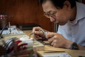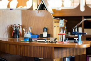 In de goudsmederij ontwerpt Kim nieuwe sieraden en/of vermaakt hij oud goud tot een nieuw sieraad, geheel naar de wens van de opdrachtgever. Ook reparaties worden grotendeels in de eigen goudsmederij uitgevoerd. 'Dat is heel mooi werk. Veel sieraden hebben een grote emotionele waarde. Daar moet je zorgvuldig mee omgaan.